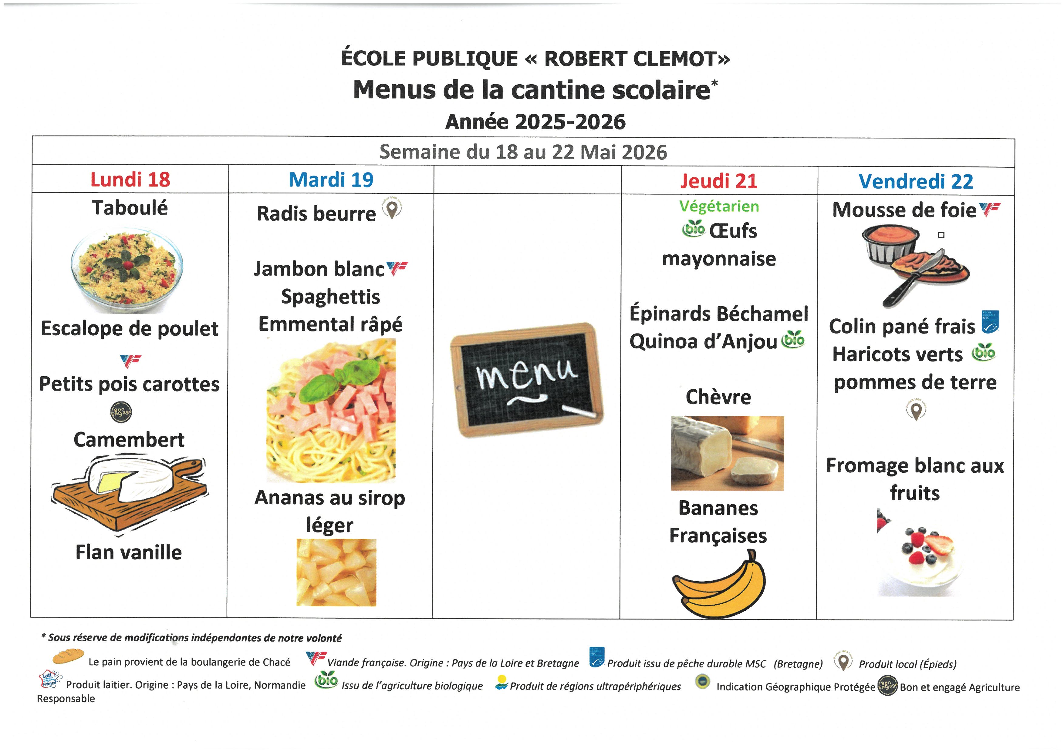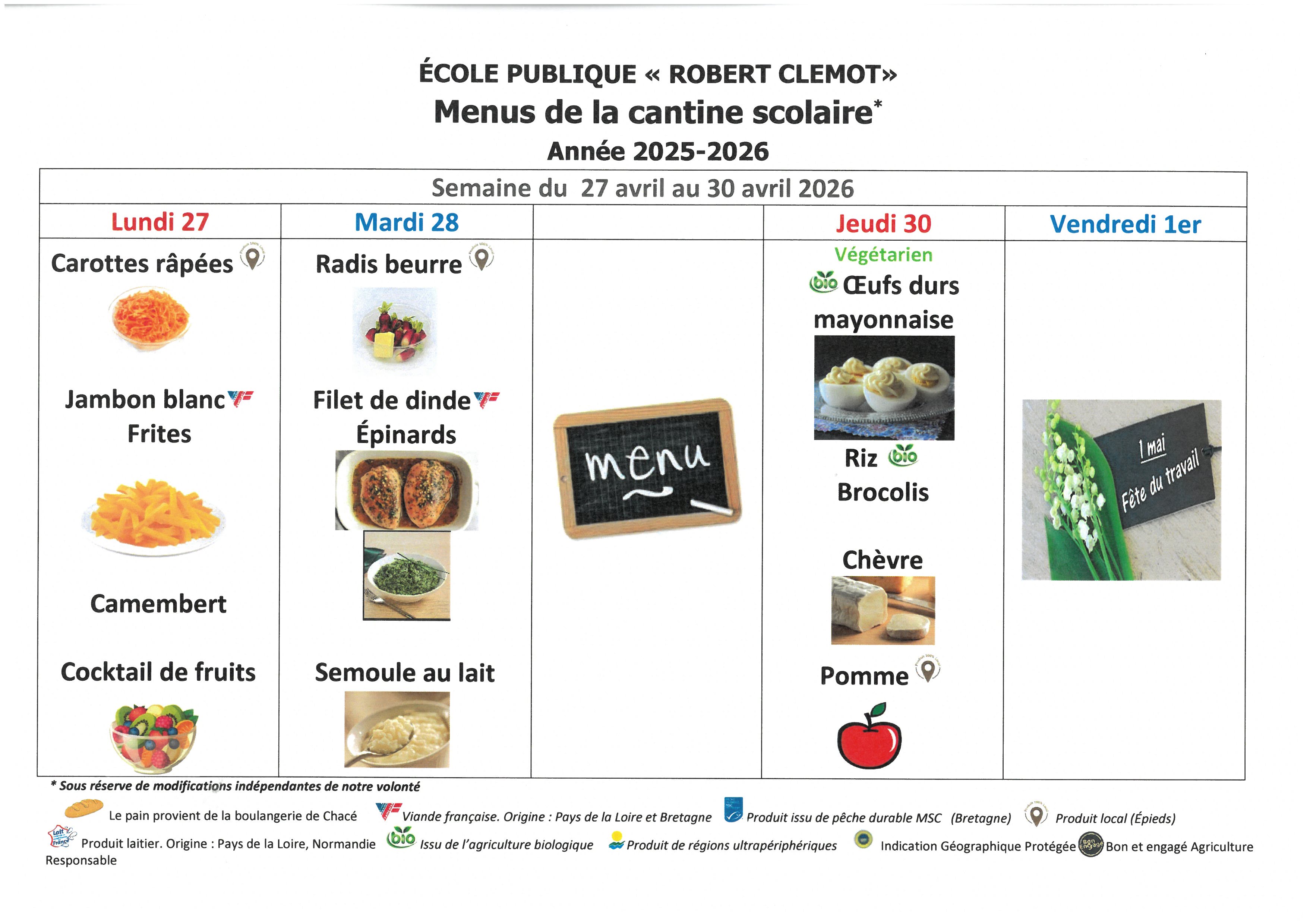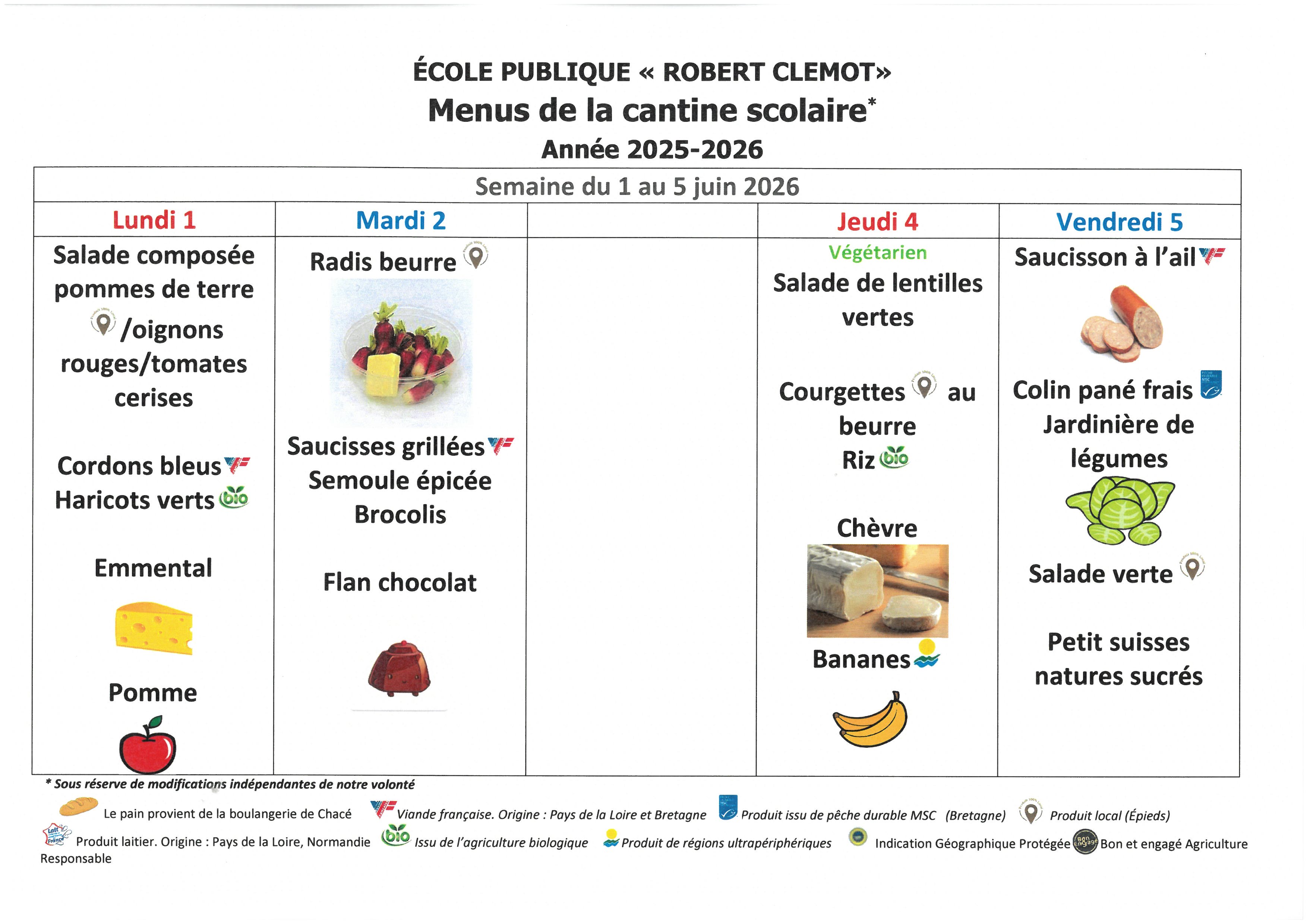 Menus de l' école Robert Clémot-cantine scolaire