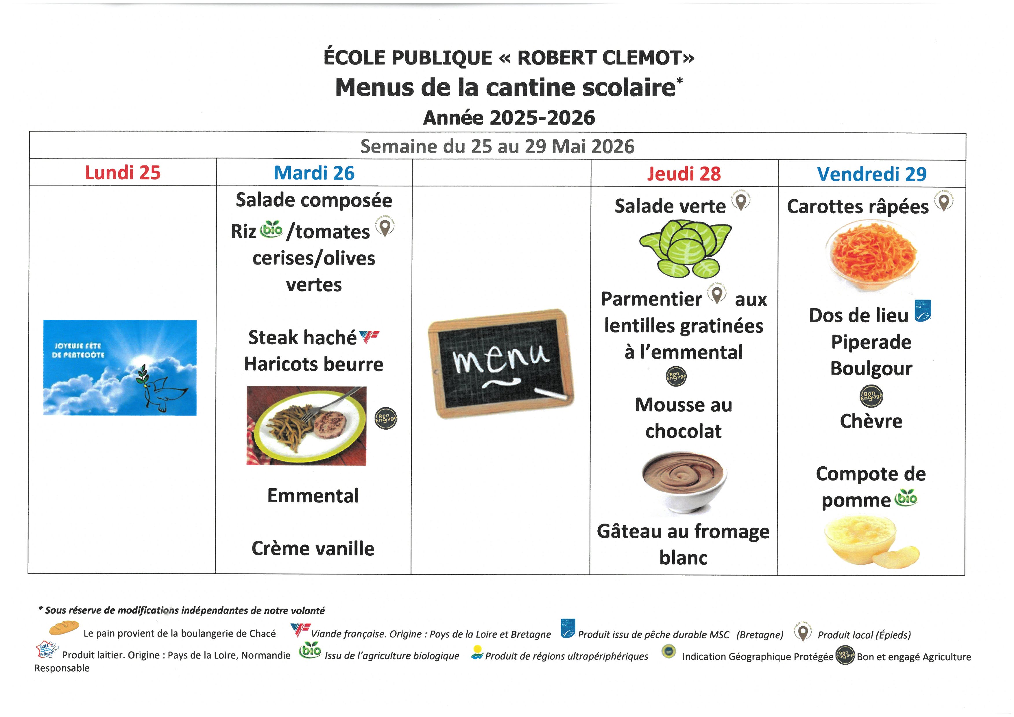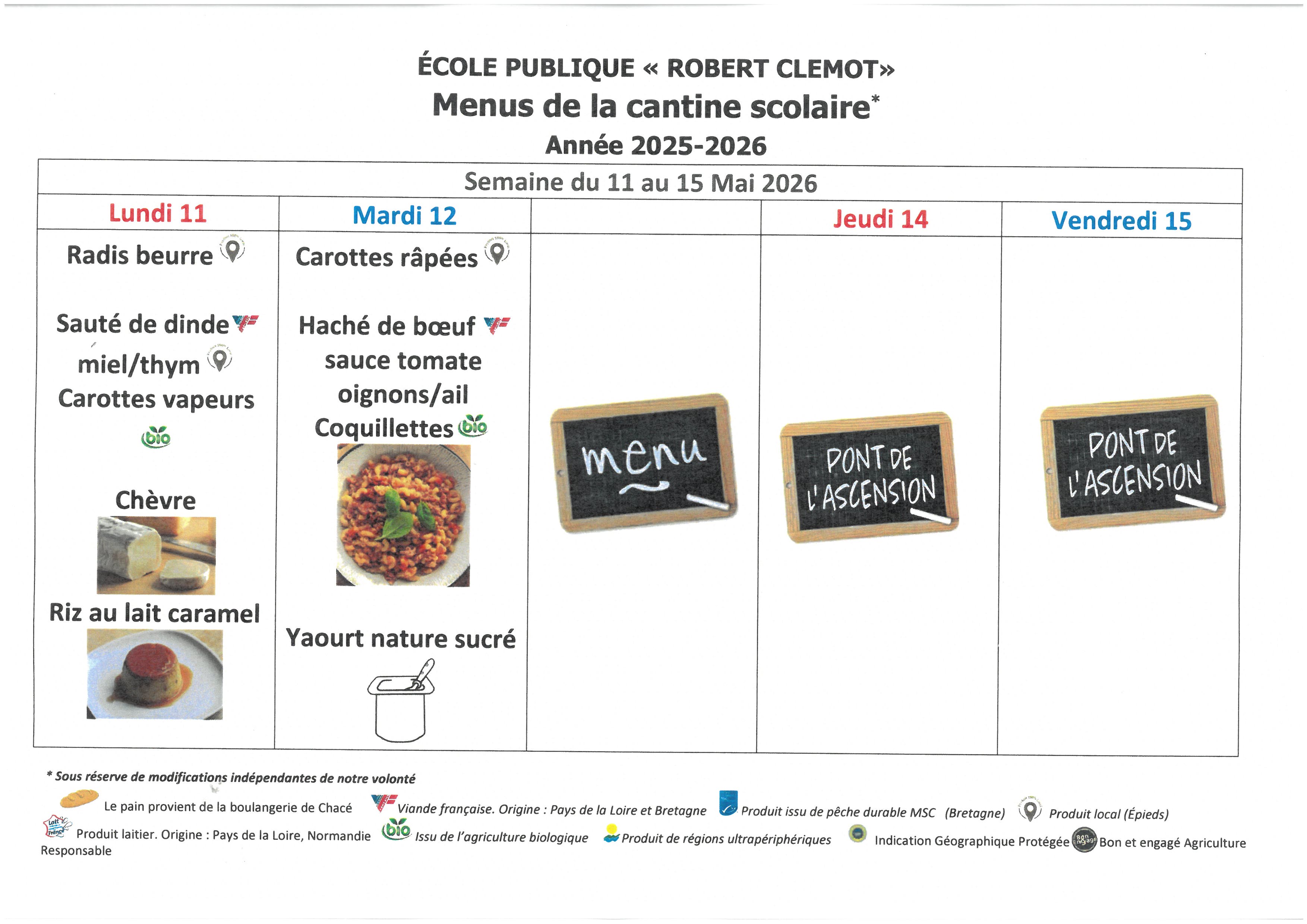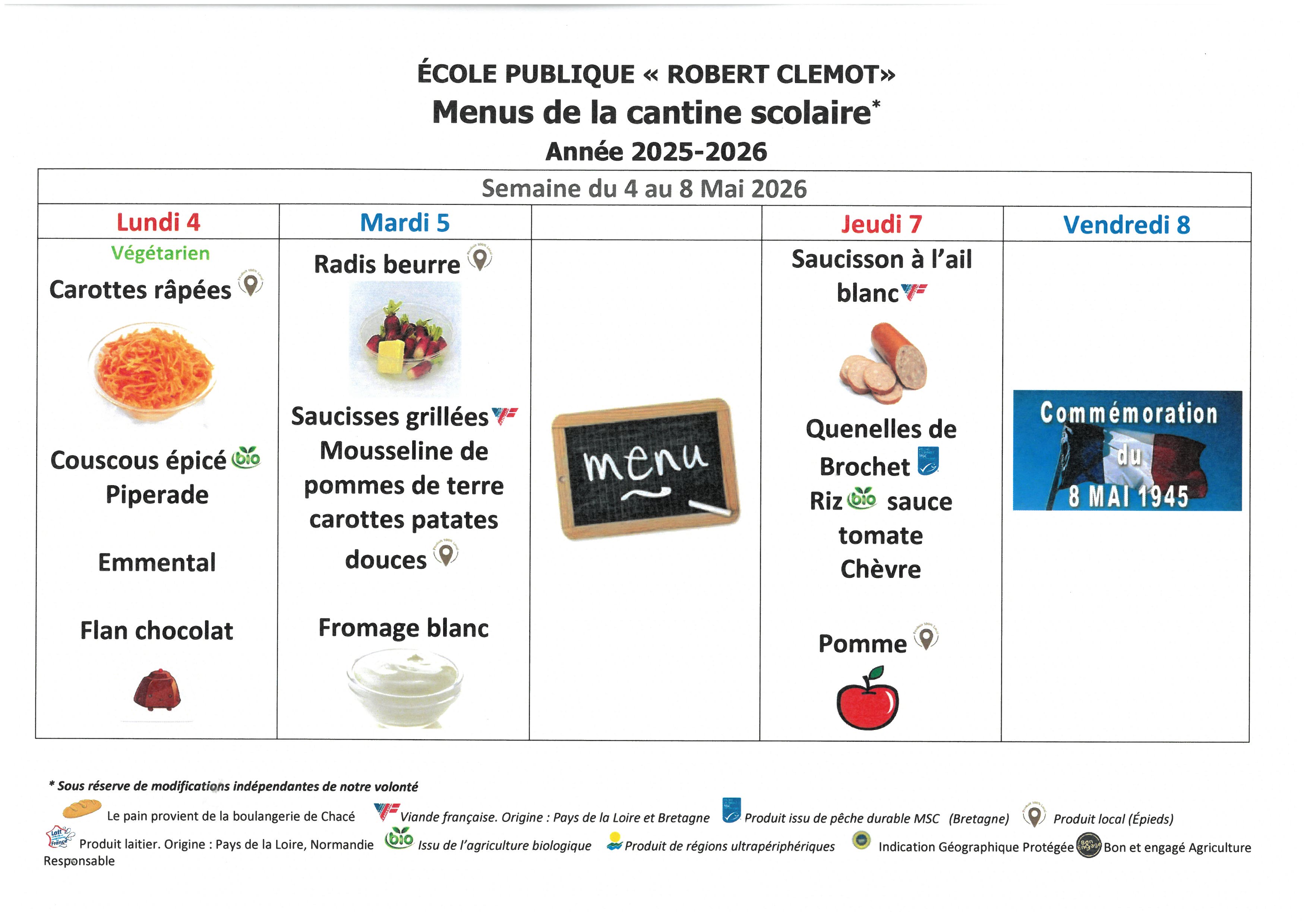 Menus de l' école Robert Clémot-cantine scolaire